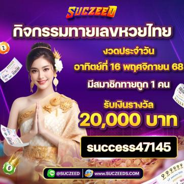 ที่สำคัญอย่าลืมศึกษาโปรโมชั่นต่างๆ ที่มีให้เลือกมากมาย ทั้งโบนัสต้อนรับสมาชิกใหม่ โบนัสเติมเงิน และกิจกรรมพิเศษอื่นๆ เพื่อเพิ่มโอกาสในการทำกำไรของคุณ การเล่นเกมบน SUCZEED นั้นสนุกและปลอดภัย ขอให้ทุกคนเล่นอย่างมีความสุขและรับผิดชอบนะครับ!